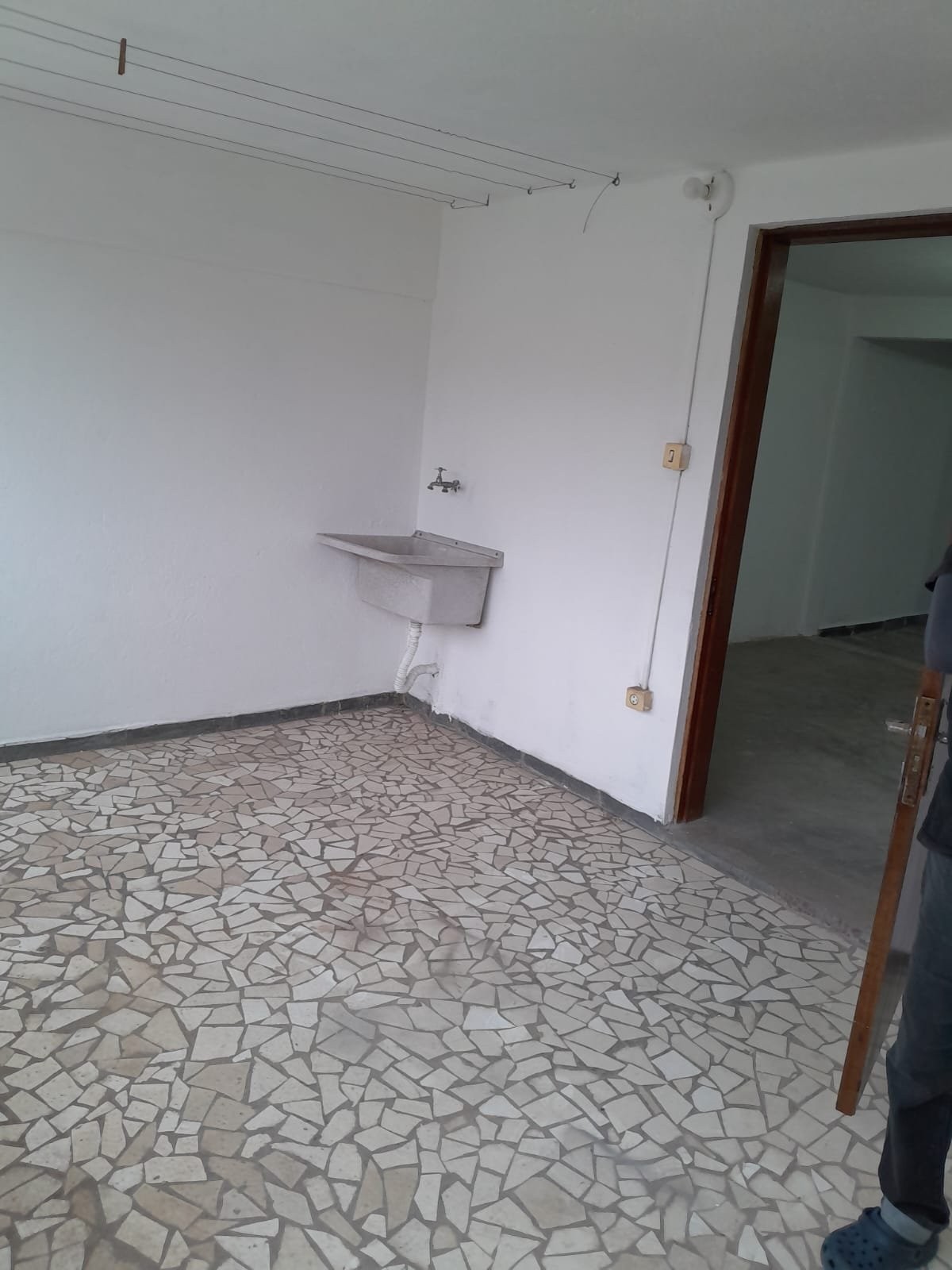 Casa de 2 cômodos no sub solo, com quarto, cozinha e lavanderia.