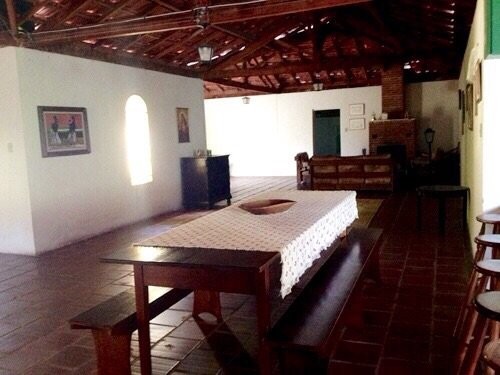 8 dormitórios sendo 7 suites - 2 suites com 14x8. 3 lavabos. 5 despensas. 2 cozinhas. 6 salas. Lareira. Churrasqueira. Forno a lenha. Fogão a lenha. Piscina. Jardim interno com laguinho para carpas. Poço artesiano ( fornecedor de água mineral ), Pomar. Apiário.